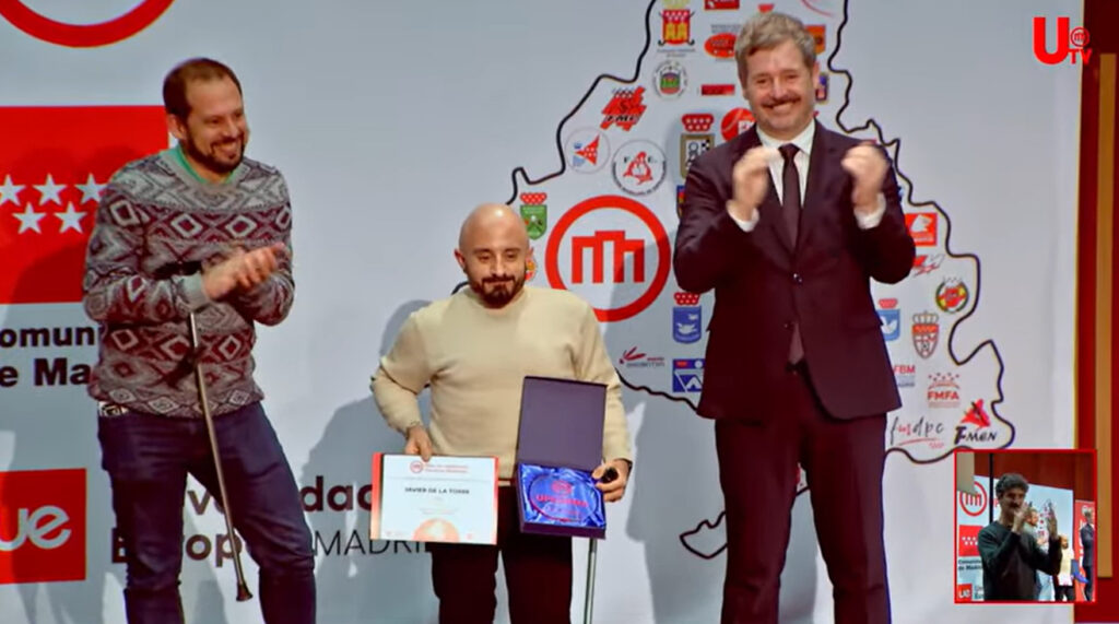 La Federación Madrileña de Parálisis Cerebral y Daño Cerebral Adquirido ha hecho entrega del Premio UFEDEMA al Valor Deportivo a Javier de la Torre, entrenador de natación y director del CNA Fuenlabrada. El galardón fue entregado por Juanjo García, presidente de la FMDPC, quien destacó la dedicación, profesionalidad y compromiso del premiado con el deporte